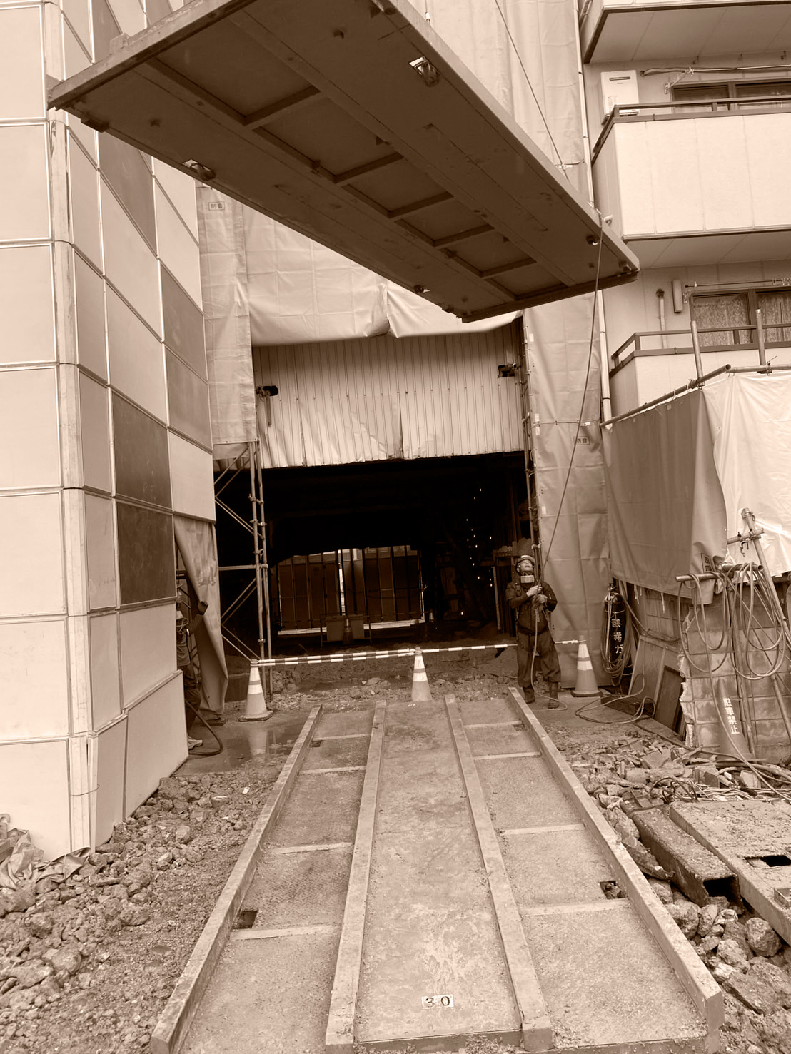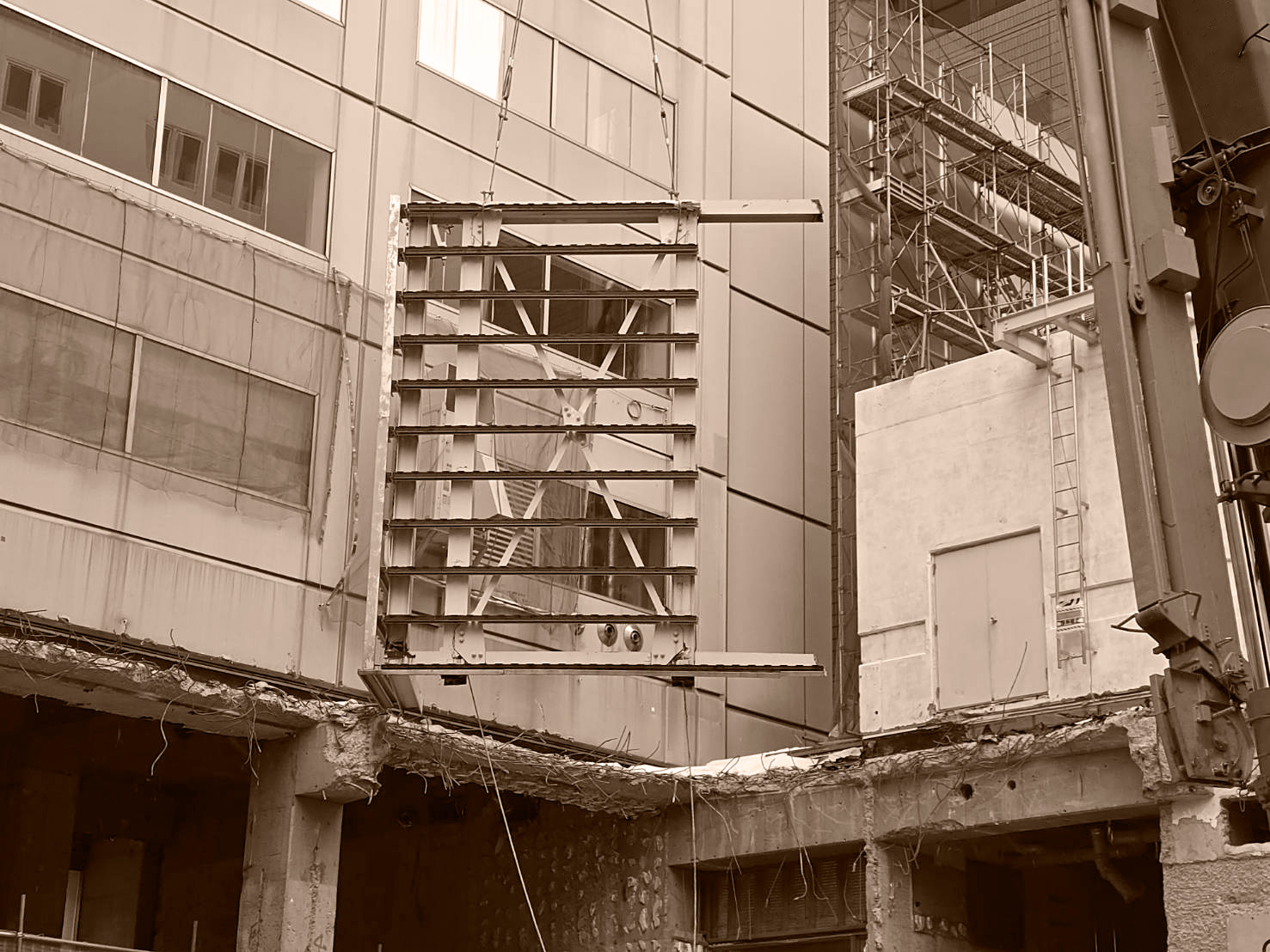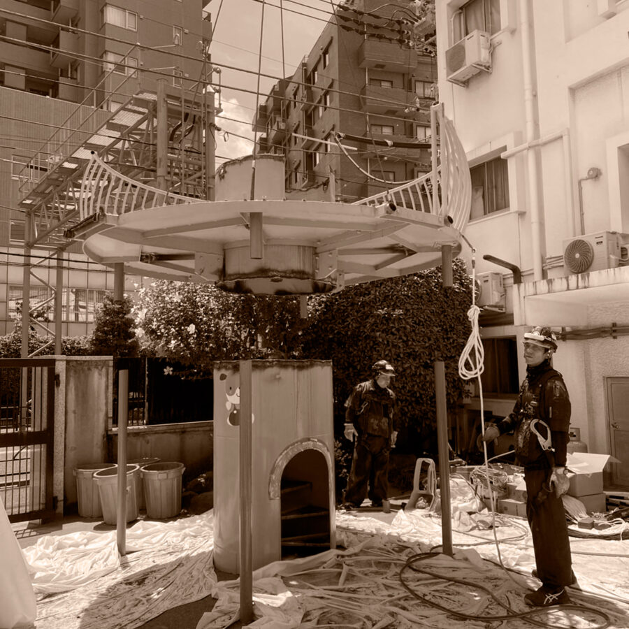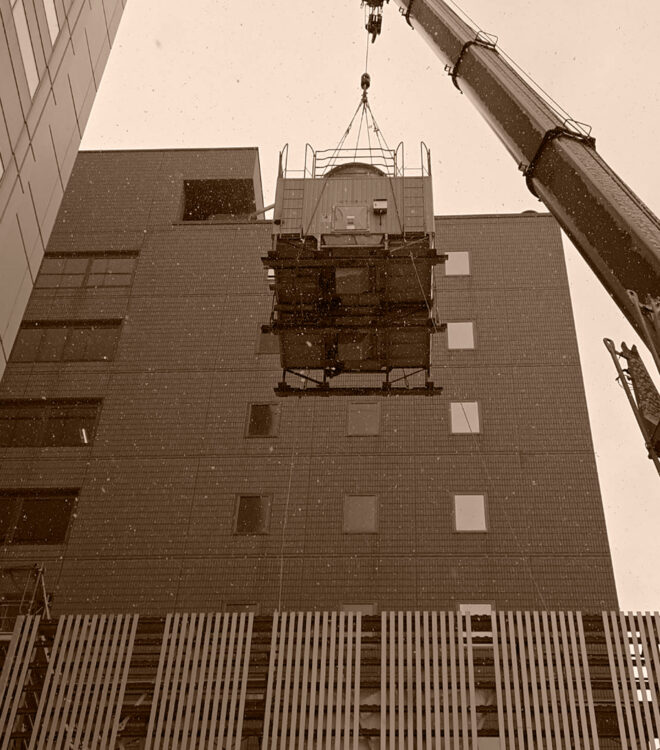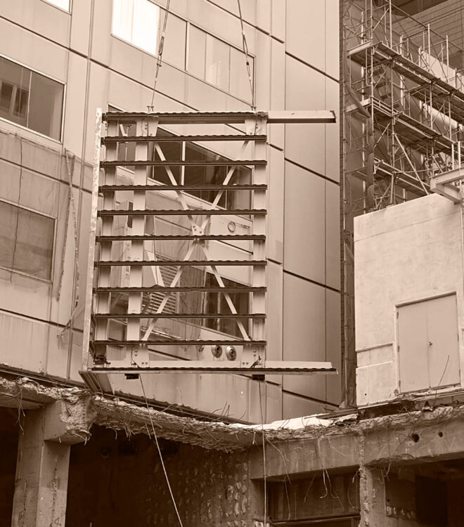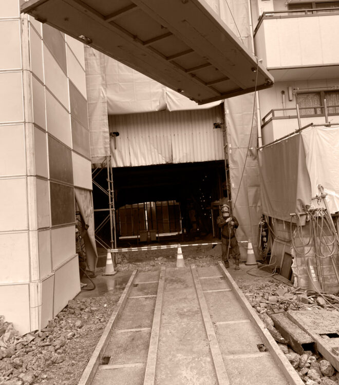 社の設立前から16年間解体業に従事し、その当時から吊り取りの工法は既にいくつもの経験をしており、様々なビルや複雑な建造物の解体を行っていました。なかでも、高層ビルの吊り取り解体は、他の解体方法に比べて周辺への騒音がしにくく、歩行者が多い道路に面していたり隣に公共施設があるなど、困難な場所にも安全に解体しやすい特徴があります。そこで、吊り取り解体に特化することで、解体業界と社会に対して安心・安全な環境をよりよいものにできるのではないかと考えました。