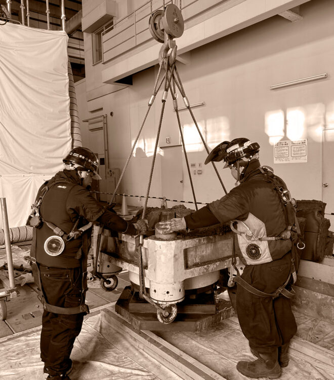 当社の吊り取り解体にはたくさんの企業様から正確で早いと定評をいただいておりますが、高い技術力だけでなく、工事に入る前の事前準備や段取りに時間をかけることにより、現場で効率のいい作業ができ、結果、工期の短縮に繋がっています。
