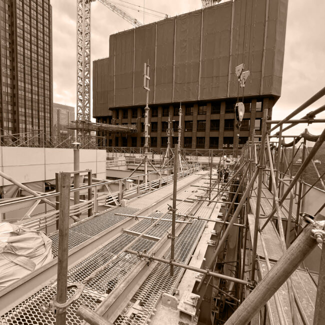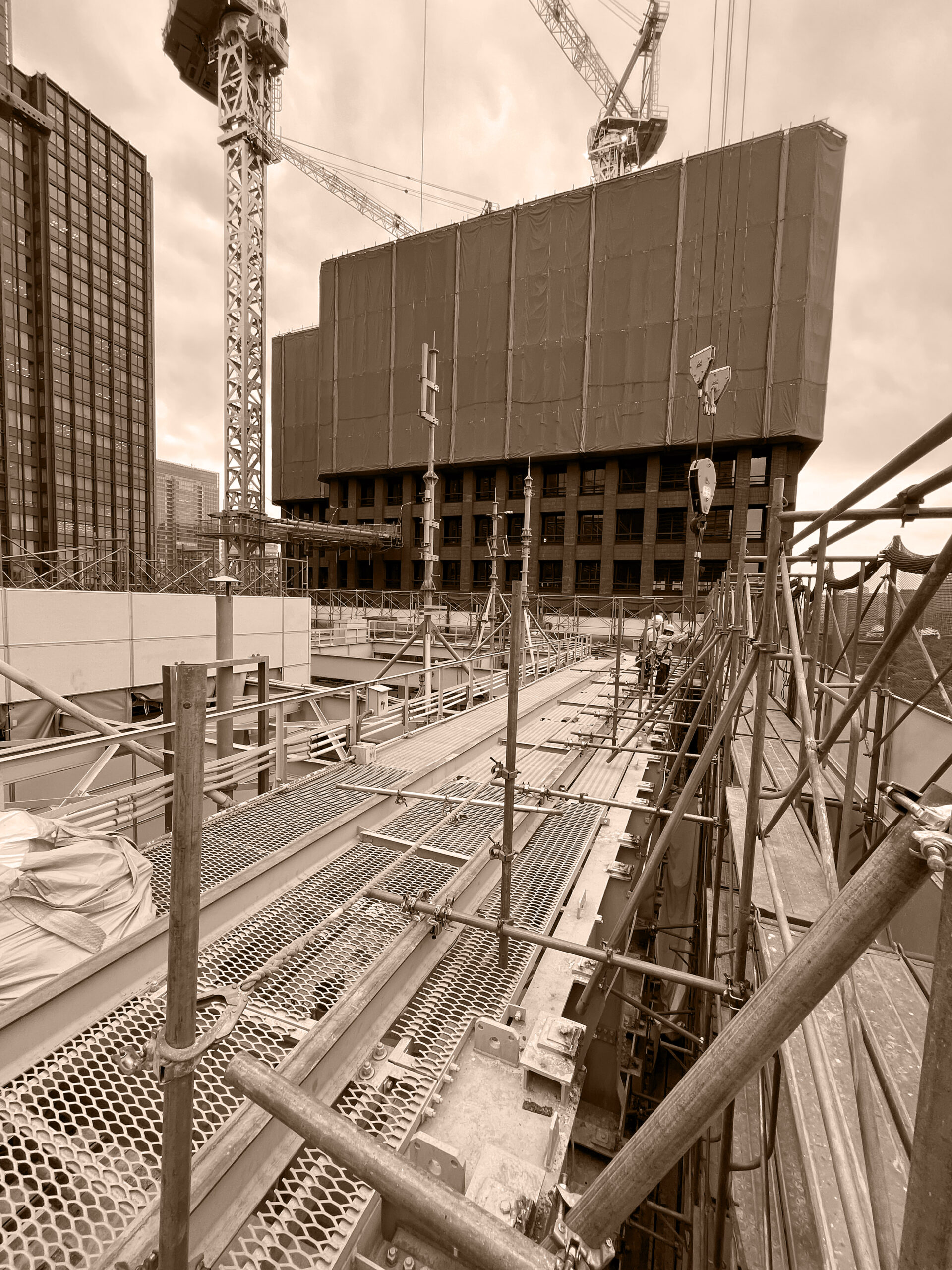 千代田区解体工事 2023年4月〜2024年3月地上25階建、延べ床面積63120平米、解体日数1年 概要 PC板にコア穴をあけチェーンスリングを通してテンションをかけて、ガスで切り吊り上げ 前へ← 千代田区高層ビル吊り取り解体 千代田区<br/>高層ビル吊り取り解体 次へ千代田区地下解体工事 → 千代田区<br/>地下解体工事