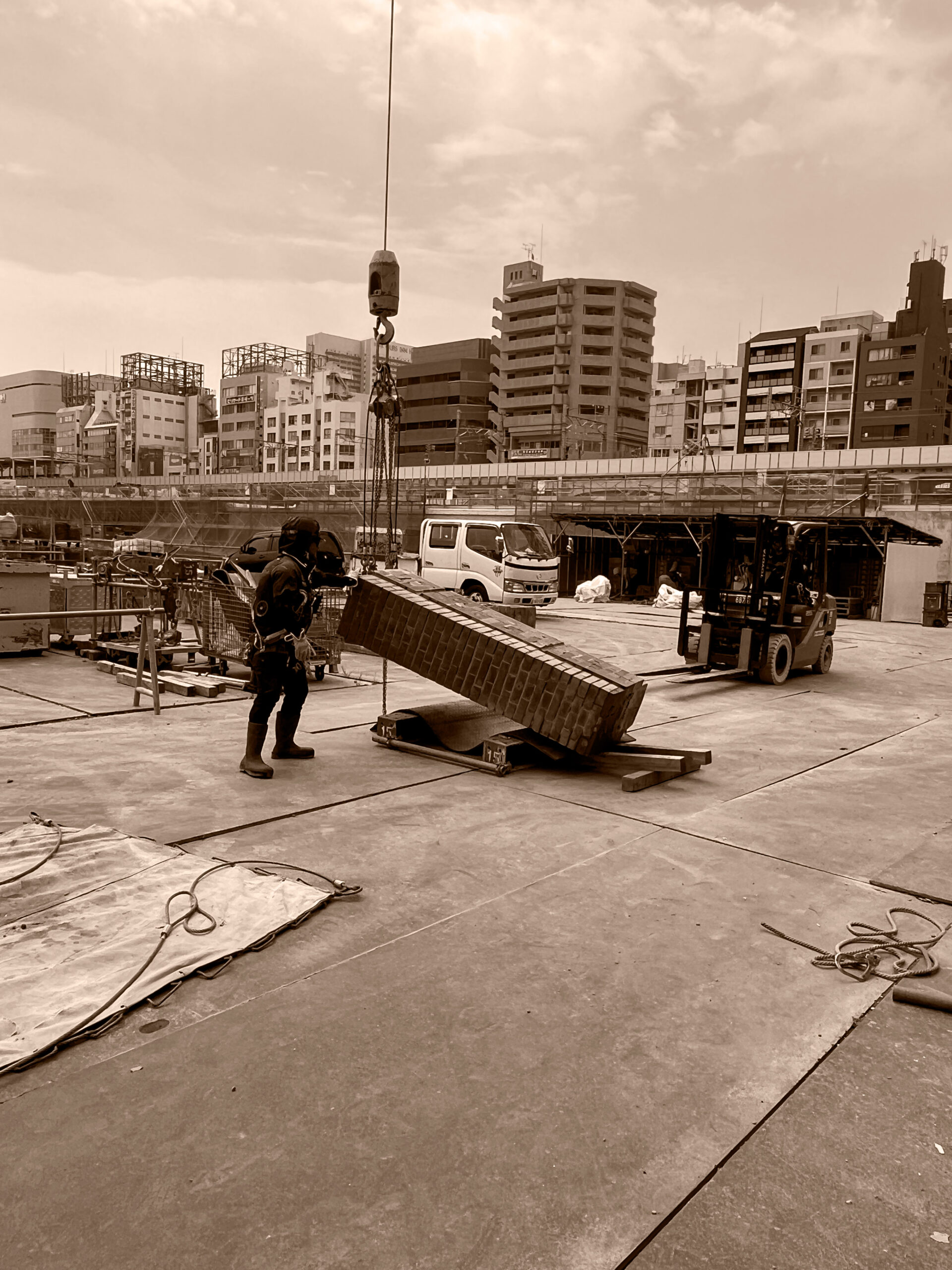 品川区ワイヤーソー吊り切り 2024年5月〜2024年7月高さ7m、解体日数3ヶ月 概要 レッカーで吊りながら、ワイヤーソーで切断し、吊り取り 前へ← 神奈川県プラント 工事 神奈川県<br/>プラント 工事 次へ築地PC板撤去 → 築地<br>PC板撤去